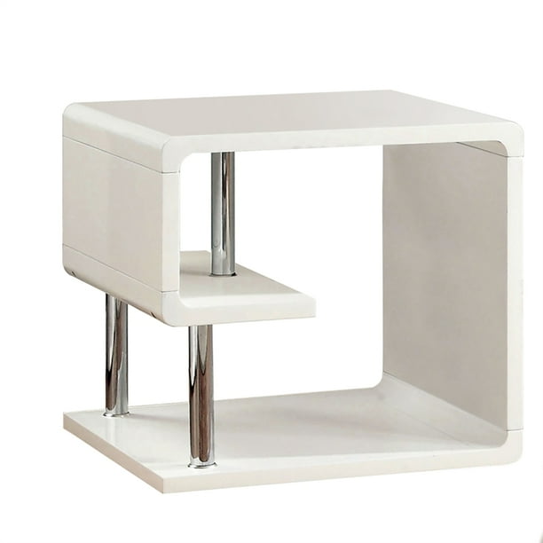 Furniture Of America Lazer Geometric Wood End Table In Glossy White Walmart Com